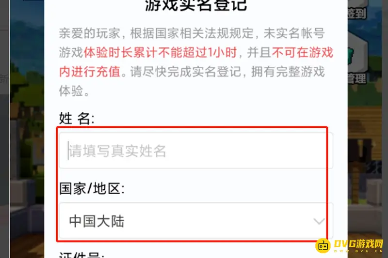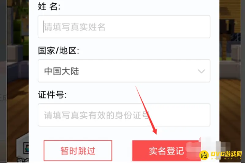 2. 在游戏实名登记中按照要求输入身份信息。