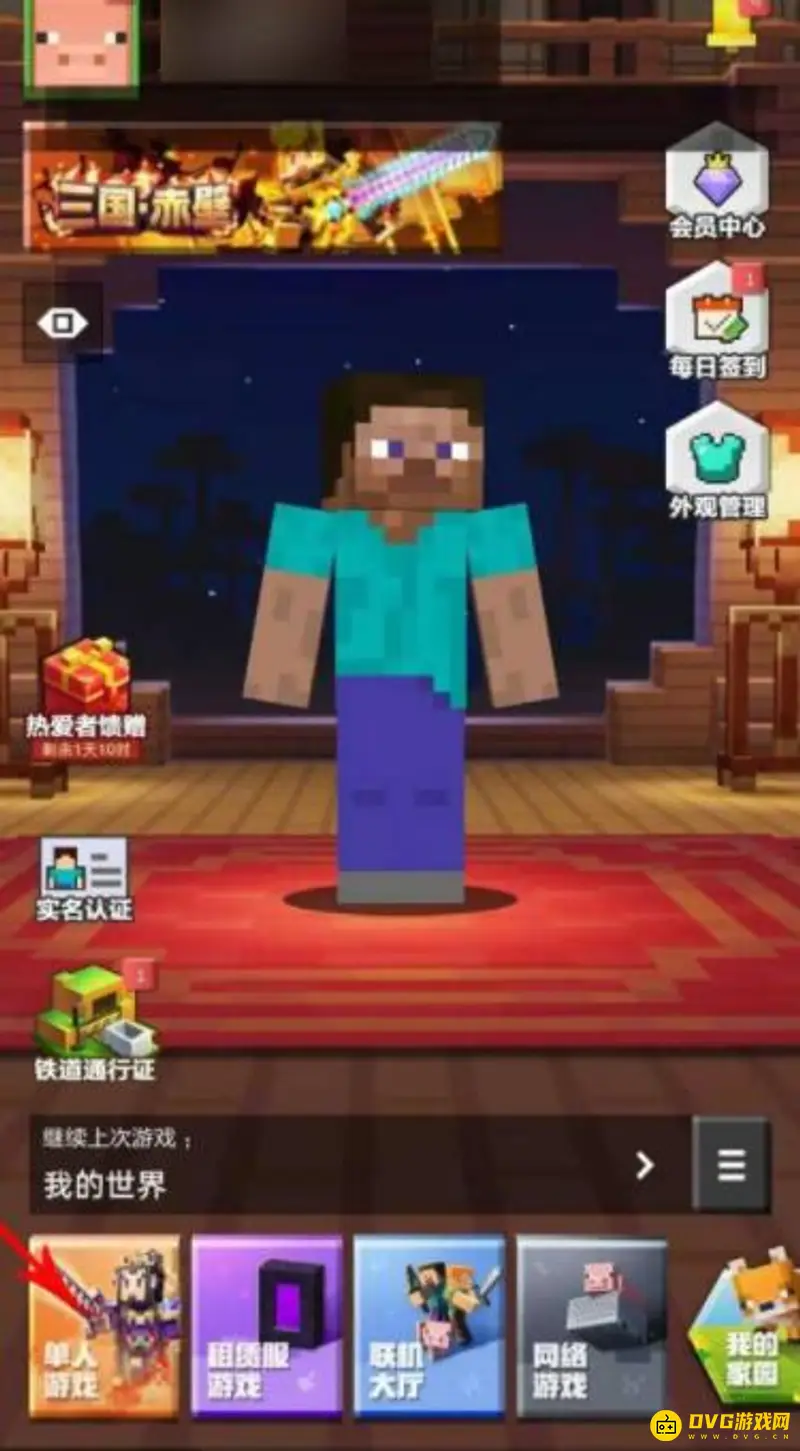 1、打开我的世界游戏,点击进入单人游戏。