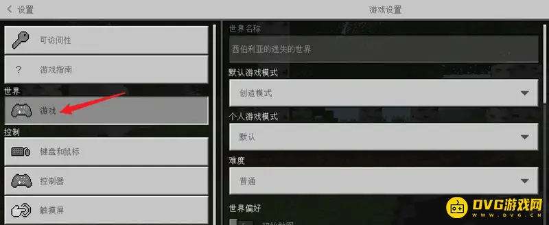 2、左侧标签点击游戏选项,进入游戏菜单。