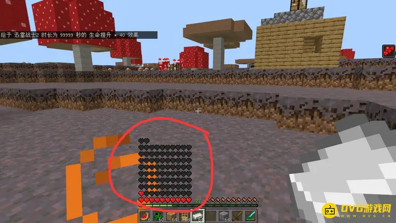 在聊天框里输入/effect @p health_boost 99999 40就可以让血量变多了。