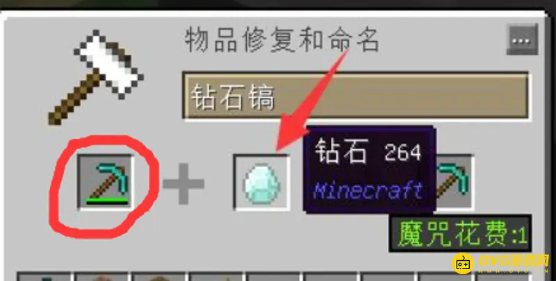 2、右键点击打开铁砧,玩家将需要修复的物品放置到第一个框中,然后将修复材料放置到第二个框中,玩家点击第三个框中的物品就是已经修理好的物品。