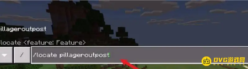 2.打开指令框之后,输入“/locate pillageroutpost”指令,然后确认前往。