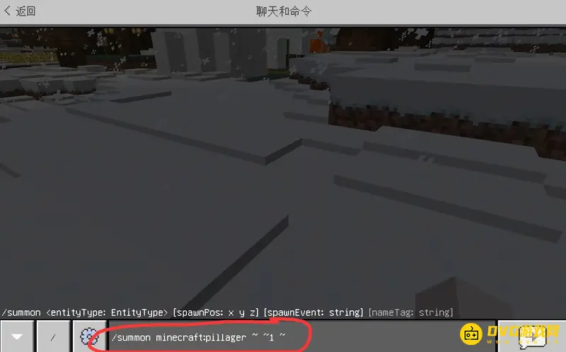 1,首先我们进入游戏,在聊天框里输入/summon minecraft:pillager ~ ~1 ~。
