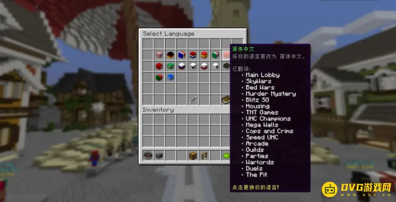 首先进入到hypixel服务器,选择并点击点击物品栏第二格的人头,接着再点击地球,最后选择中文就能立即生效了。