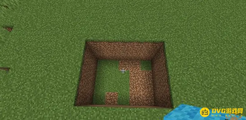 2、在草地上挖个坑,倒水 挖个2*2*1的正方形的坑,把水桶里面的水倒入刚挖的坑里。