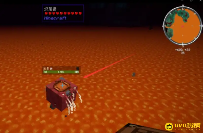 6、最后,坐在炽足兽上使用诡异菌钓竿单击右键即可将炽足兽驯服,即可乘坐炽足兽在地狱的岩浆海中行走。