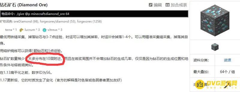 2,然后找到钻石矿的相关说明,就会发现钻石在10层附近了。
