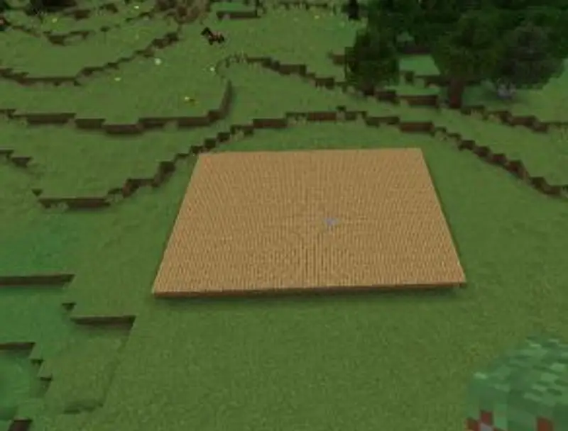 1、首先搭一个18×12的木板地基,注意地基不是嵌在泥土里的,是放在泥土上面的。