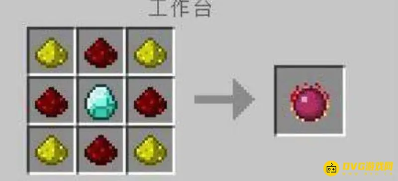 1、第一步,打开工作台,如图所示,用四个萤石粉、四个红石和一颗钻石摆成如图所示,用来合成贤者之石。