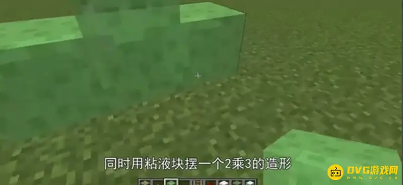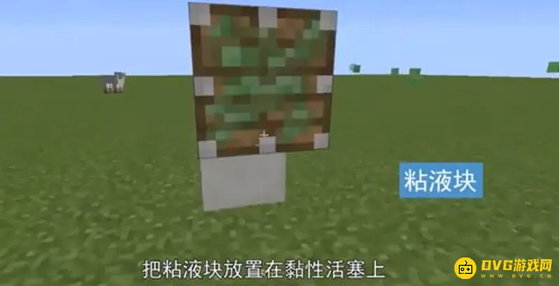 1.先放置一个方块装上粘性活塞,把粘液块放置在粘性活塞上