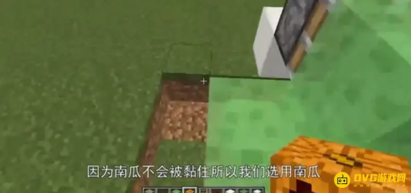 3.再把下面掏空放置南瓜。这样是为了防止粘液块黏住地面,因为南瓜不会被黏住,所以我们选择南瓜