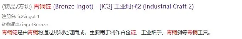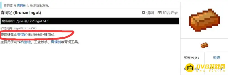 1,首先我们搜索并进入青铜锭的相关说明。