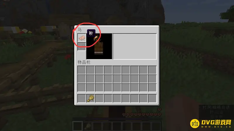 3、骑上之后按“E”键,打开物品栏,将鞍装备到马身上即可。