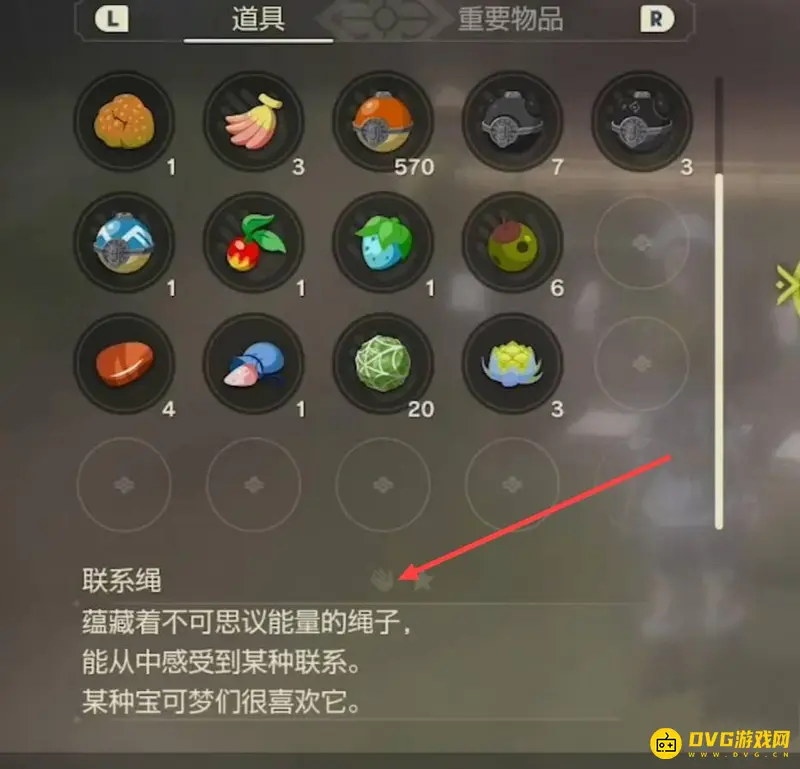 1、点击联系绳。在阿尔宙斯的腰包界面里,找到联系绳,选中它。