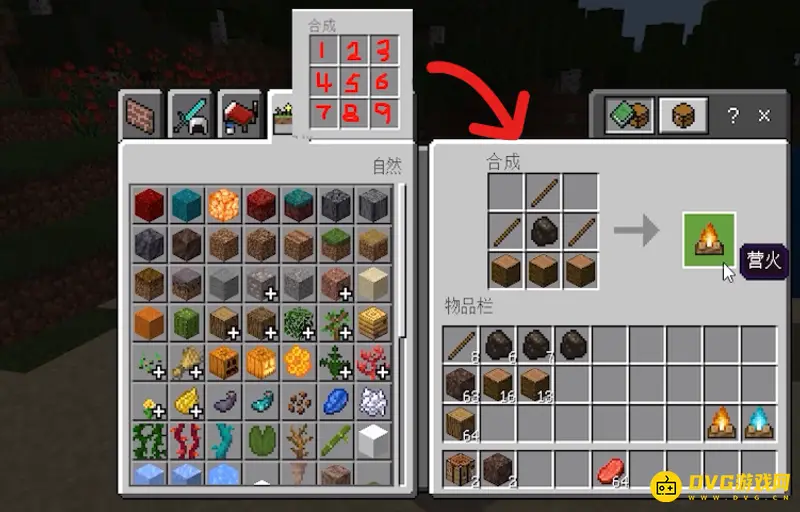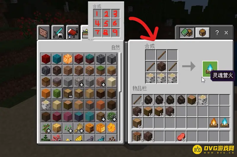 如下图所示,营火为红色火焰,灵魂营火为蓝色火焰。营火合成配方为木棍、木炭和任意原木,而灵魂营火合成配方为木棍、灵魂沙和任意原木。