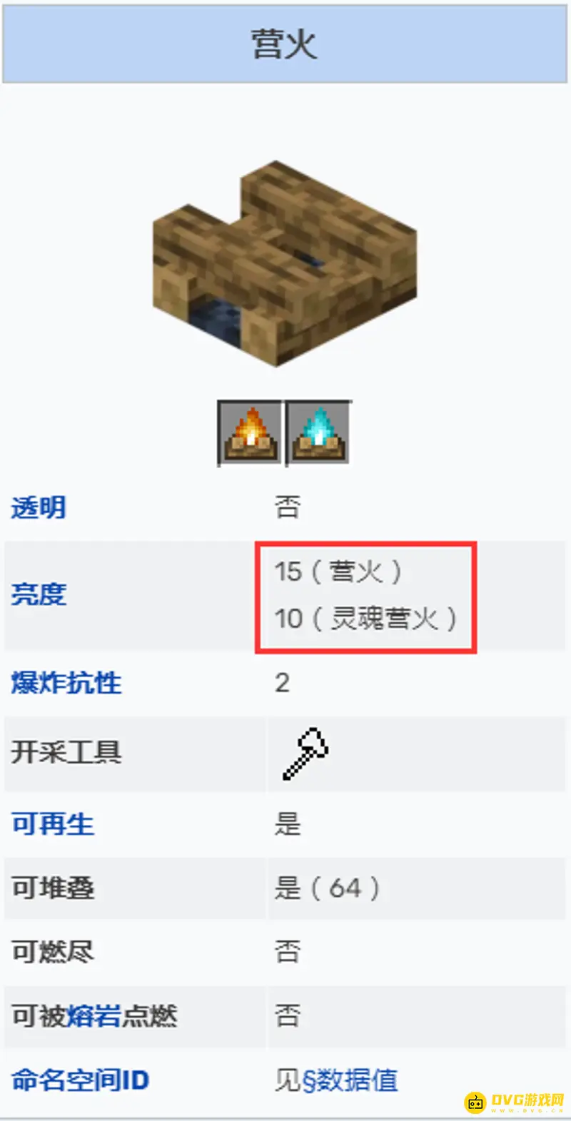 ②营火会发出亮度为15级的光,可以融化3格内的雪和冰,而灵魂营火发出亮度为10级的光,由于亮度较低,不能融化雪和冰。