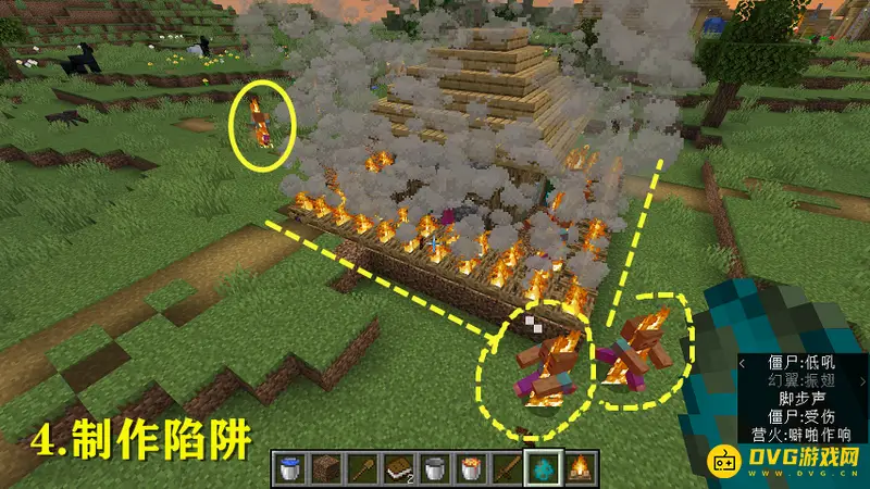 ④无论是否在水下,点燃的营火都会对站在上面的活动实体造成1点的伤害效果,而灵魂营火却能造成2点的伤害效果,从中不难看出,灵魂营火要比营火更胜一筹,用来制作陷阱再好不过。