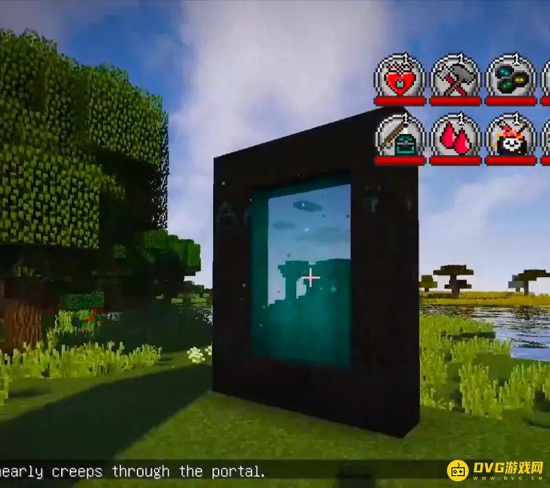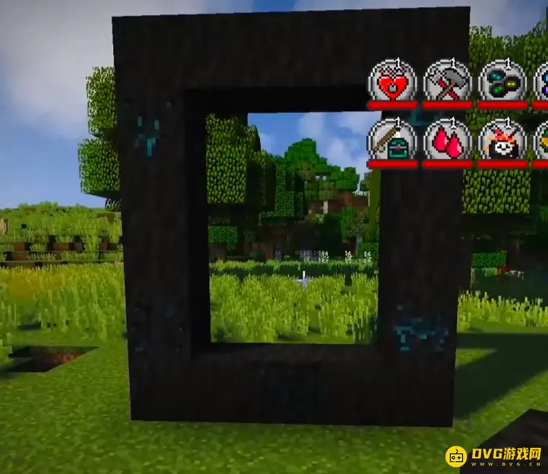 4、完成搭建。把能量雕符石放在门框下方,处于正中间的位置,把其他雕符石放在门框上,任意位置都可以放,即可完成传送门搭建。