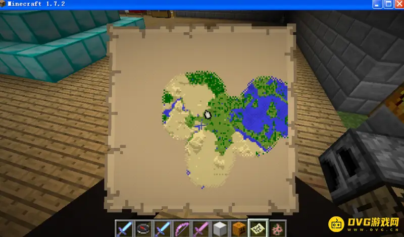 2.将甘蔗横向放置可以获得纸张,3个甘蔗换3张纸,制作9张纸,将一开始制作的那张地图放九宫格正中,然后周围8格放置纸张,这样地图就扩大了。