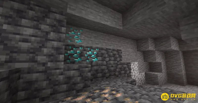 (2)沿着你发现的洞穴往下走直到Y坐标低于16层,或者在找到较深的峡谷后抵达峡谷底端,可能会发现一些裸露的钻石矿脉。