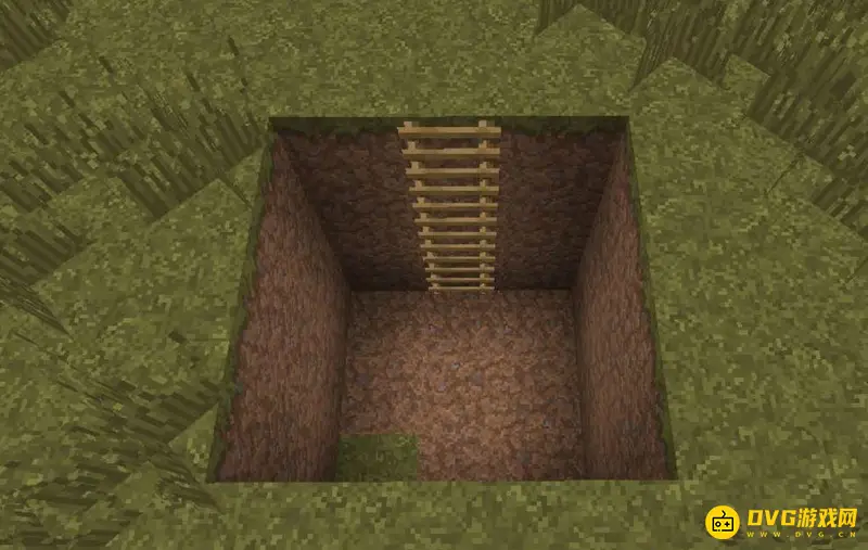 1、首先挖一个3格深的3x3的小坑,然后在一侧放上三个梯子方便我们上下即可。