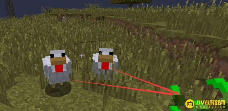 3、找到鸡群后,你把小麦种子拿在手上,你就会看到数只鸡扑腾着翅膀向你扑来,这时候你就一直往回走,直到你掉进刚才挖的坑里为止。引来的鸡也会掉进这个坑里,然后你就从梯子爬上来即可。