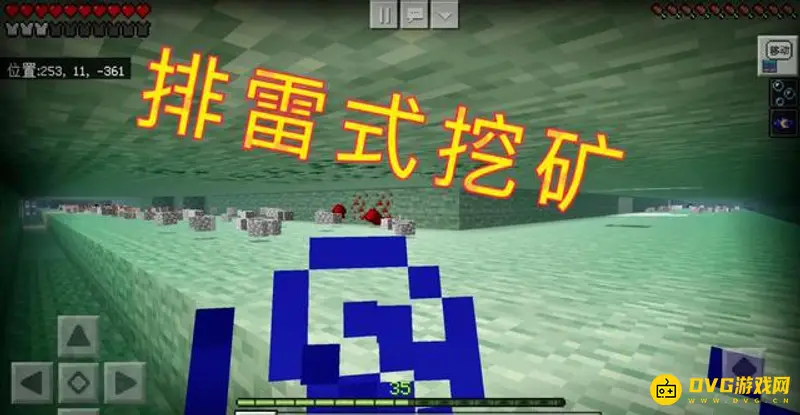 2、排雷式挖矿,优点:矿物种类较多!缺点:钻石数目少!不舒适!在我十分钟的测试下,最终只挖到了10颗的钻石,略高于鱼骨式挖矿,但是整体的舒适感显得更加的差于鱼骨式挖矿。差不多在三分钟左右挖到了第一处钻石,之后就是各种各样的石头和矿物了。