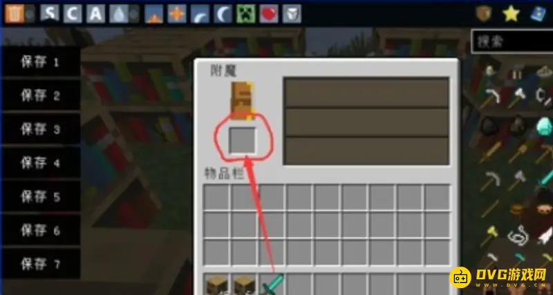 2、在附魔台旁边摆放好书架,使附魔台升到30级。然后继续放入附魔台,继续附魔。