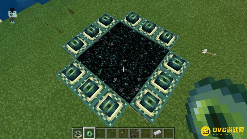 3,接着拿着末影珍珠找到附近出现的传送门里,把末影珍珠丢进去。