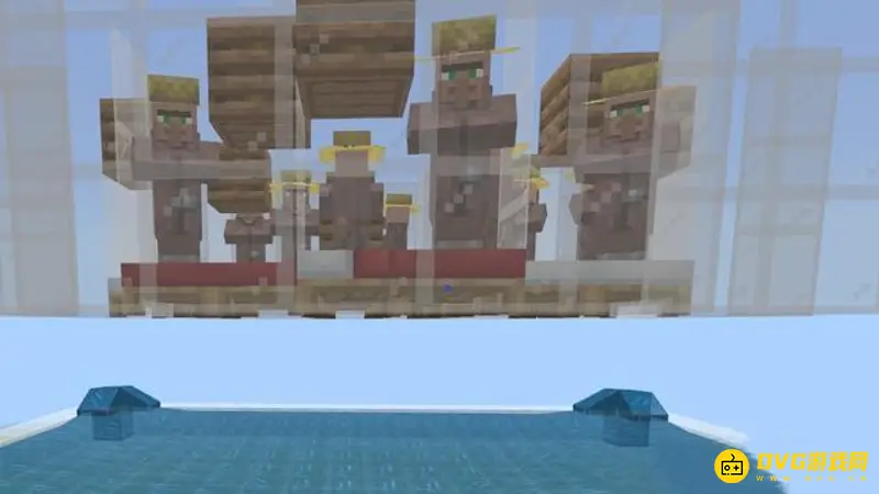 5、这时候要注意床的方向可以随意摆放,在小平台周围提高两格防止村民跳出,再将顶部封住,床下面的小平台方块拆除。