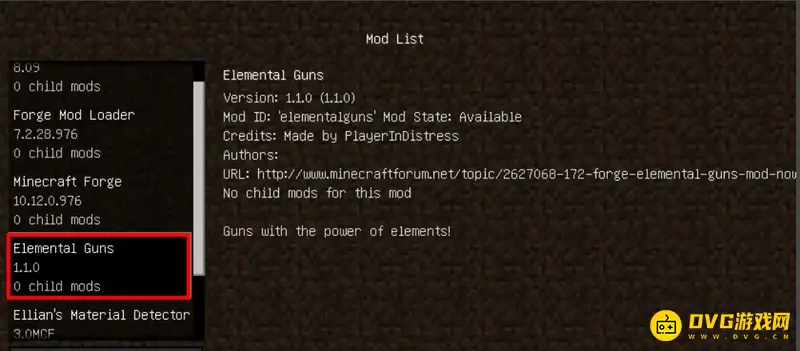 1、在网站上找到ELEMNNTAL GUNS模组(如下图所示),下载模组文件至本地文件;