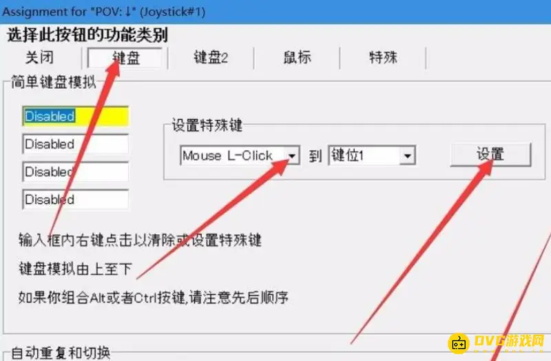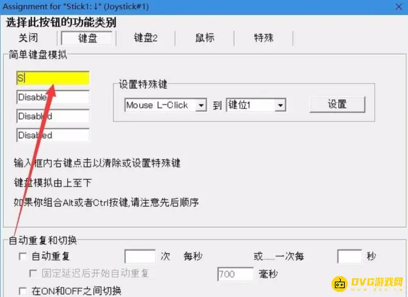 7. 双击那个键进入设置,比如设置的是左摇杆下滑,按下键盘s设置成s键