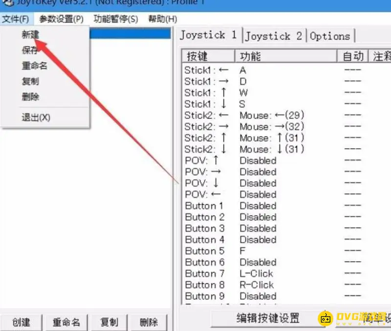 5. 在joytokey右上角右键,选择新建,为了便于区分,设置名称为我的世界