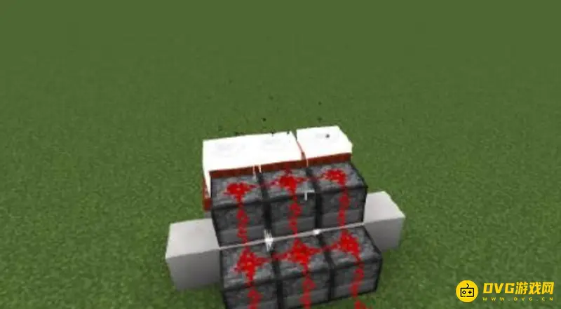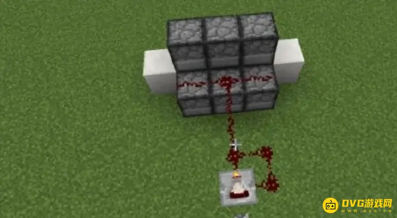 5、拉杆放下后再在发射器上放最后的三个红石,就可以开始使用啦。