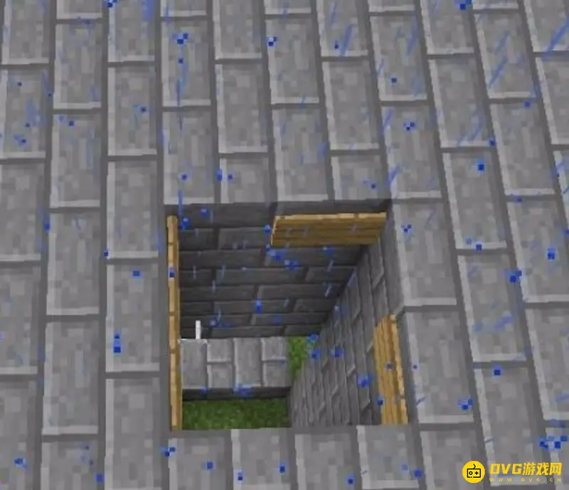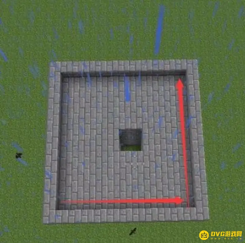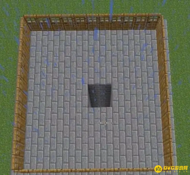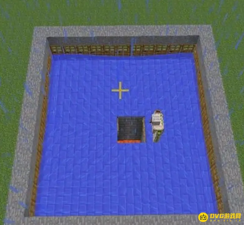 10.水流会汇集到中间位置。但不会流下去,被木牌挡住了。然后门的上面再围一圈石头。