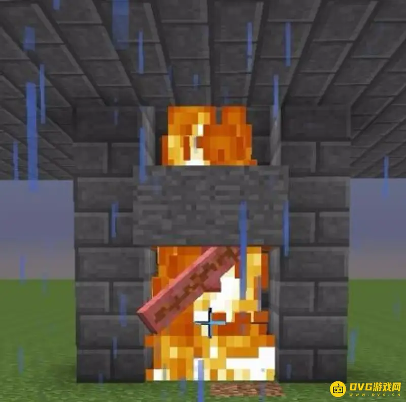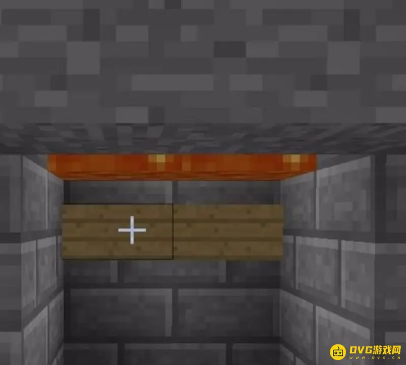 13.在木牌上面放1桶岩浆。岩浆会固定在那格。不会流下来,被木牌挡住了。