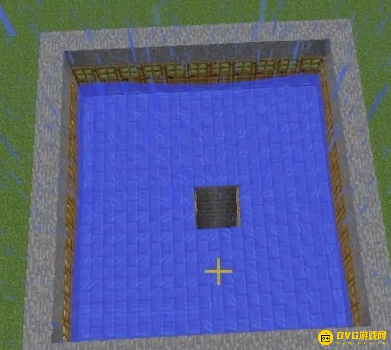 5.里面插满火把照明,防止刷怪。中间位置提高3格。并且延伸到外围。