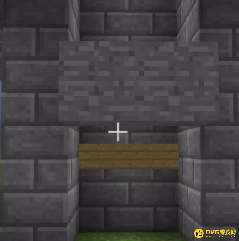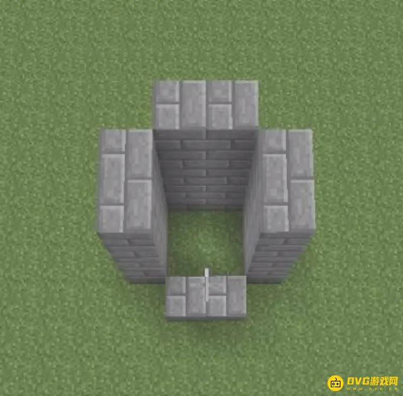 12.木牌冲着的对面提高一格高,放两个石头,并且里面贴2个木牌。