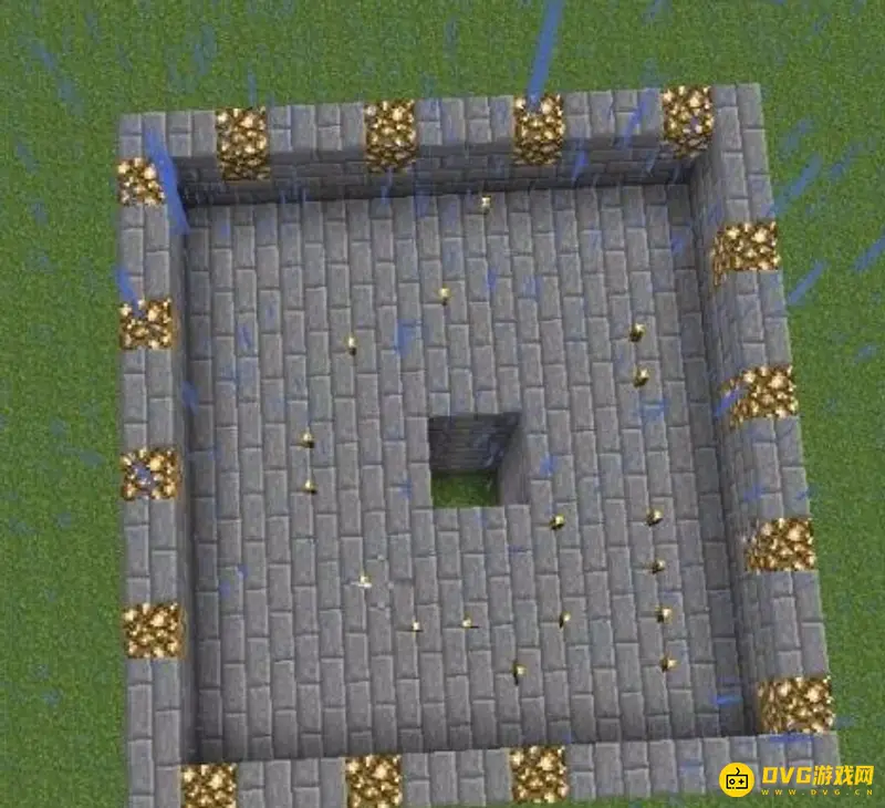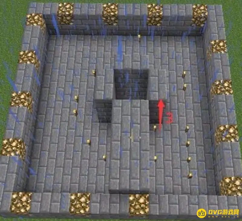 4.外围提高一格,并且每2格用一个萤石或者南瓜灯照明。