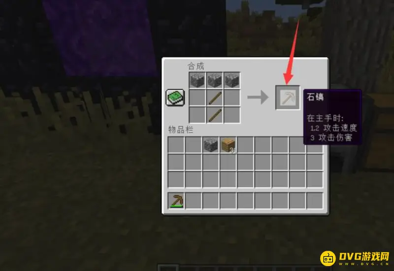 2、玩家也可以通过三个原石和两个木棍来合成石稿。