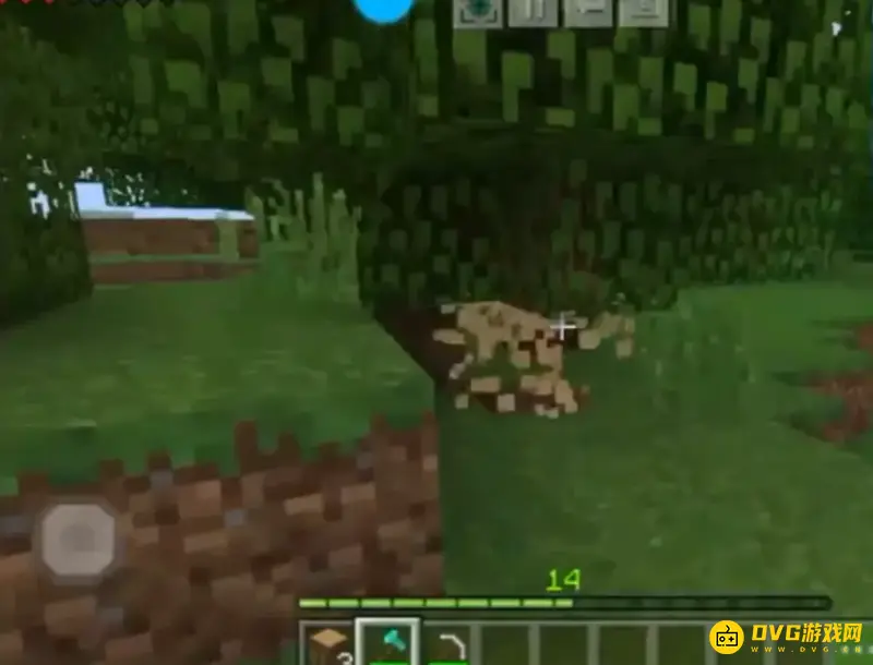 1、第一步:玩家需前往野外伐木,可以使用斧头道具加速获得木头方块