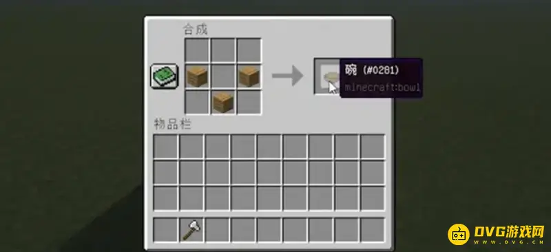 3、第三步:再次打开工作台,将三个木板放置于工作台的格子中(一个木板在最下面一行中间格子中,另外两个木板分别放置在中间一行左右两个格子中)