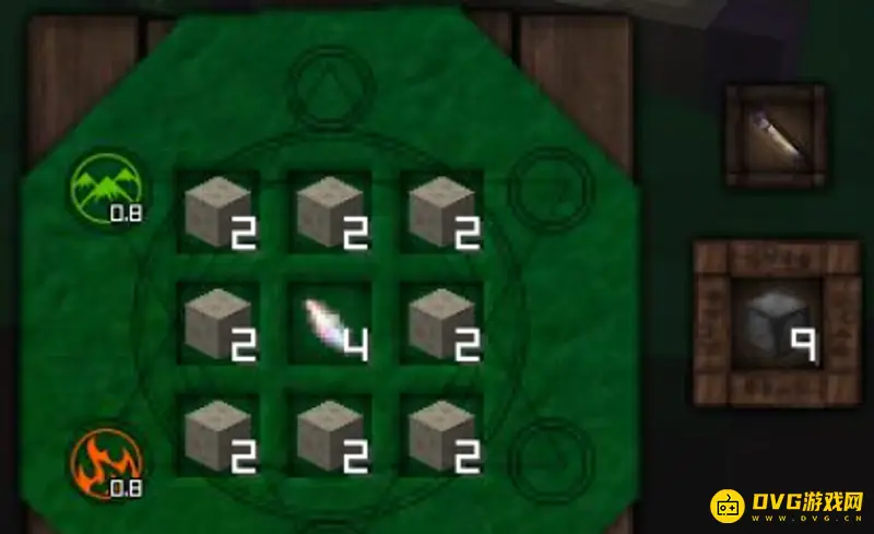 2、再将奥术石块如图摆放合成4个奥术石砖。合成不需要元素
