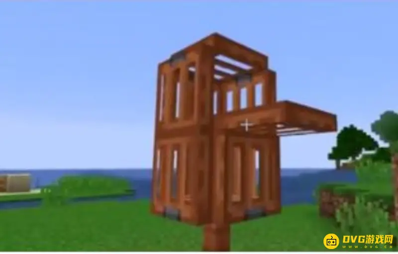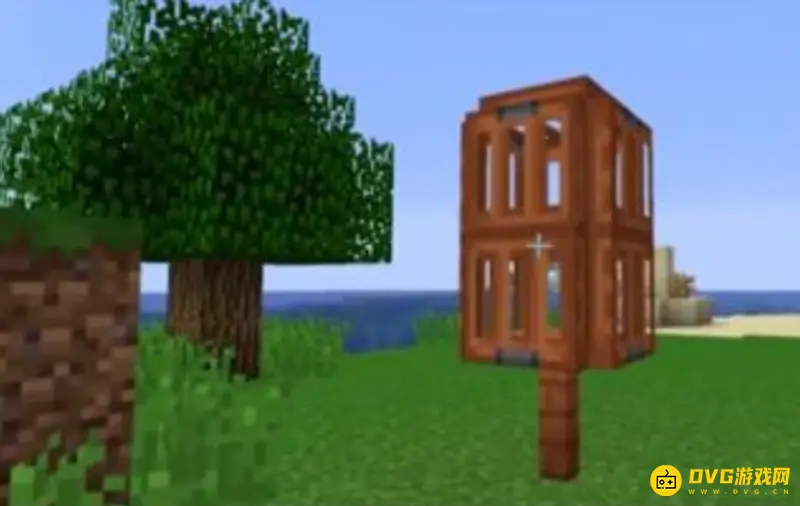 1.首先需要找一块合适的地方,然后我们放置一根两格高的栅栏,栅栏的颜色可以自定义选择,之后我们需要在栅栏上面放置一块半砖,木板能合成半砖。