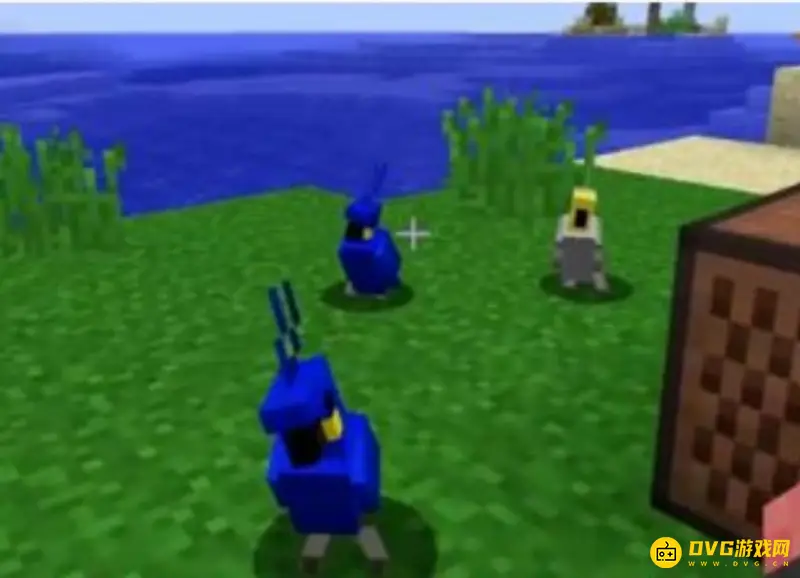 4.在围成所以栅栏前将准备好的鹦鹉放进去,放完之后选择橡木半砖将上面填好。