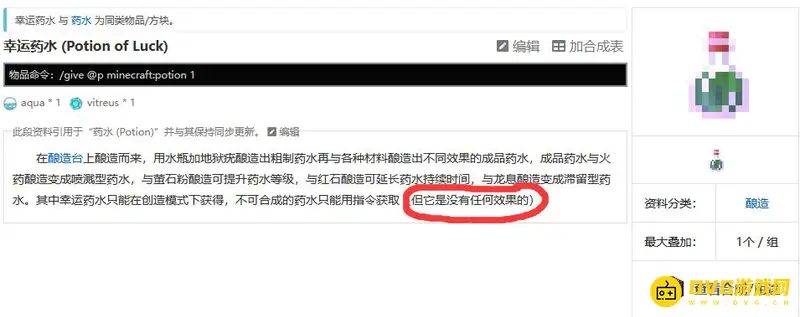 1,首先我们搜索并进入我的世界幸运药水的相关说明。