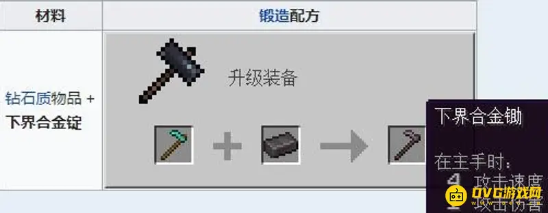 2、下界合金装备,需要钻石装备放到锻造台里加上一个合金锭。