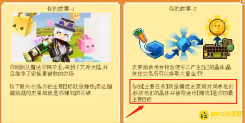 玩家在进入游戏后,会得到一本说明书,根据说明书可以得知,史莱姆是有中是可以赚钱的。