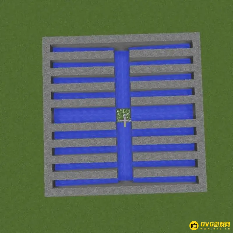 10、将每个沟渠中都倒入水,两格的沟渠倒2桶水。高度够了以后,就可以开始向周围延伸了,主要是建造一个可以将怪物推入中间摔落通道的水道。因为塔顶的刷怪平台一旦刷新出来怪物,这些怪物都是自由活动的,它们可不会一个个的跑到中间去自杀,所以我们就需要建造一个能将它们推到中间摔死的建筑,水道就是一个非常不错的选择。