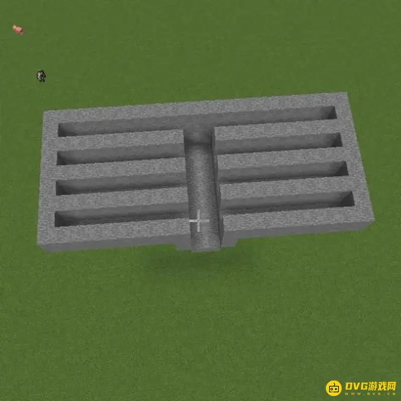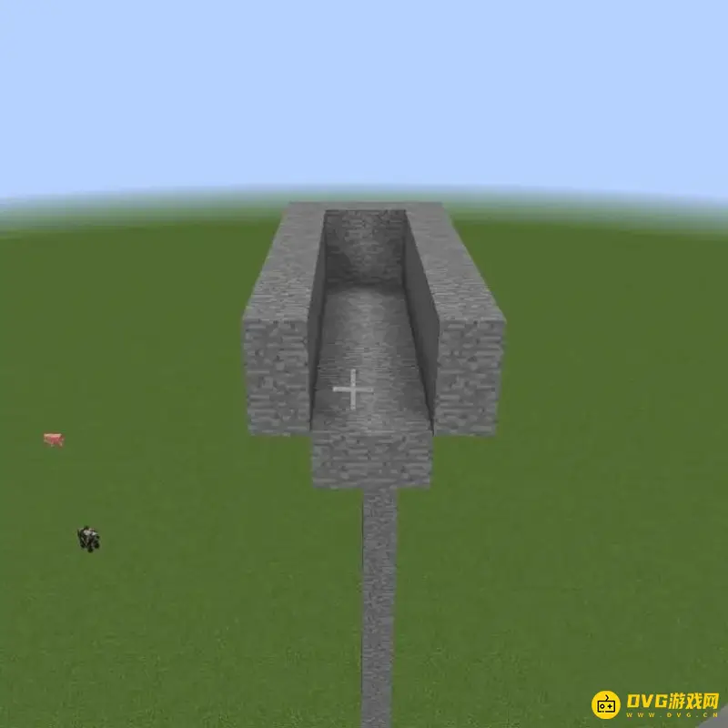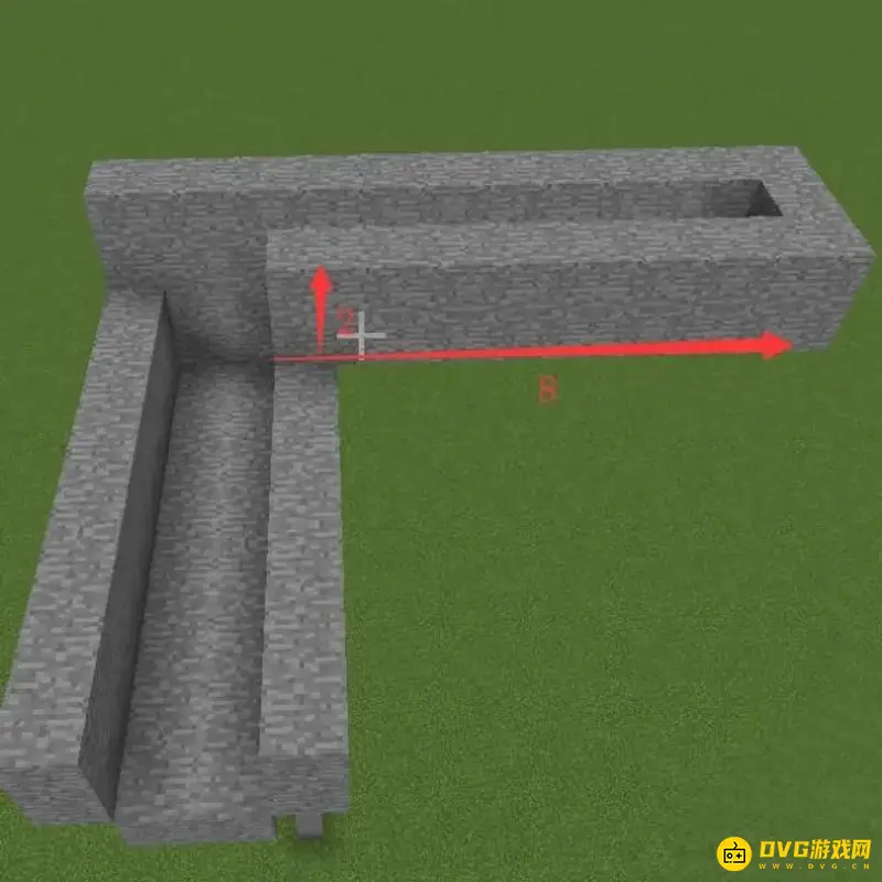 3、用石头将两边分别提高2格的高度形成一个凹形